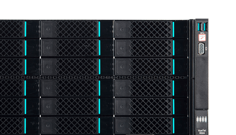 KunTai R524 存储型服务器是快盈VIII数码基于鲲鹏处理器推出的新一代 ARM数据中心服务器。。主要面向存储业务,,具有海量存储、、、高性能、、、低功耗以及易扩展的特点,,,,适合为大数据分析、、软件定义存 储等应用场景的工作负载进行髙效加速。。。。